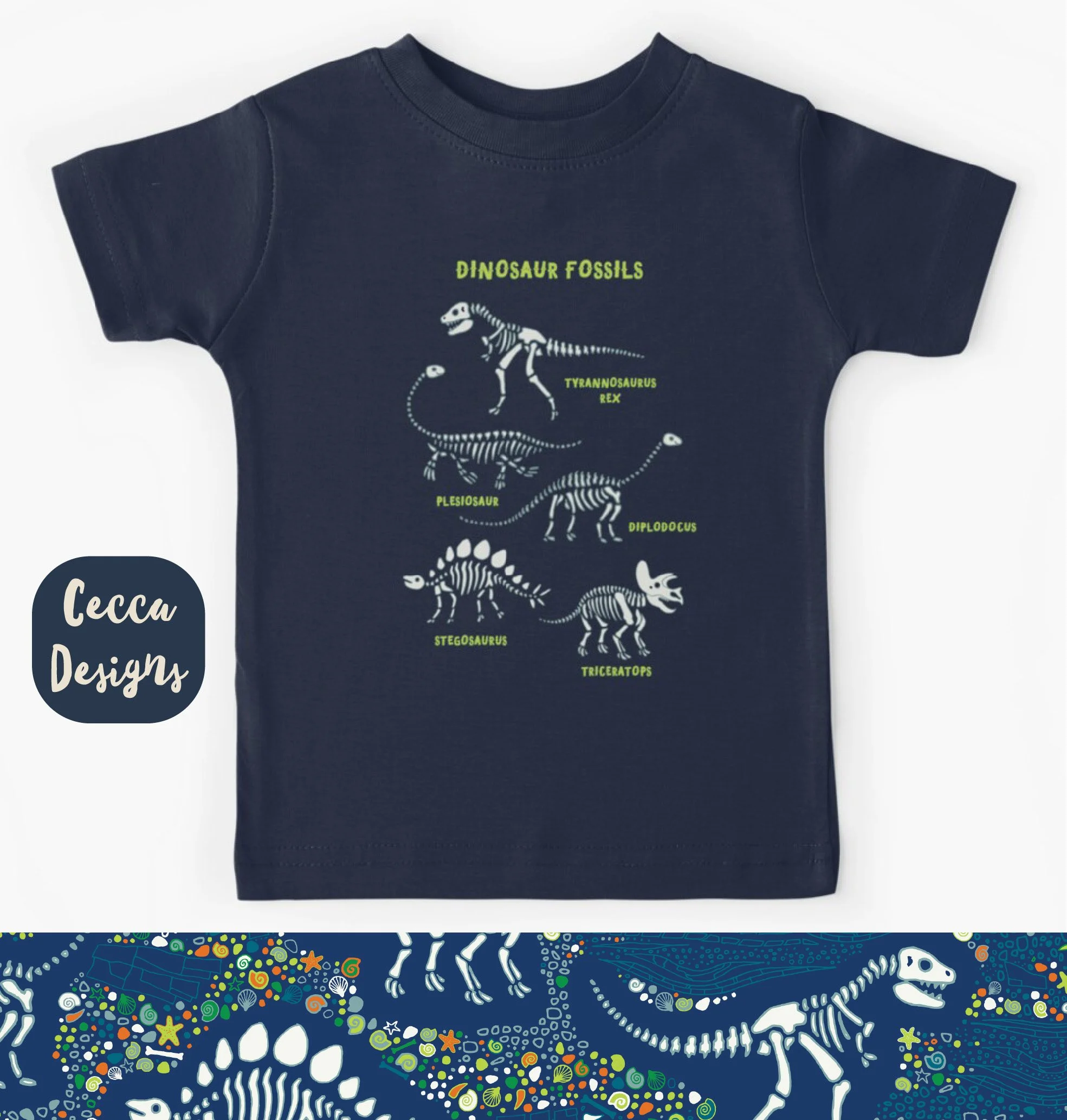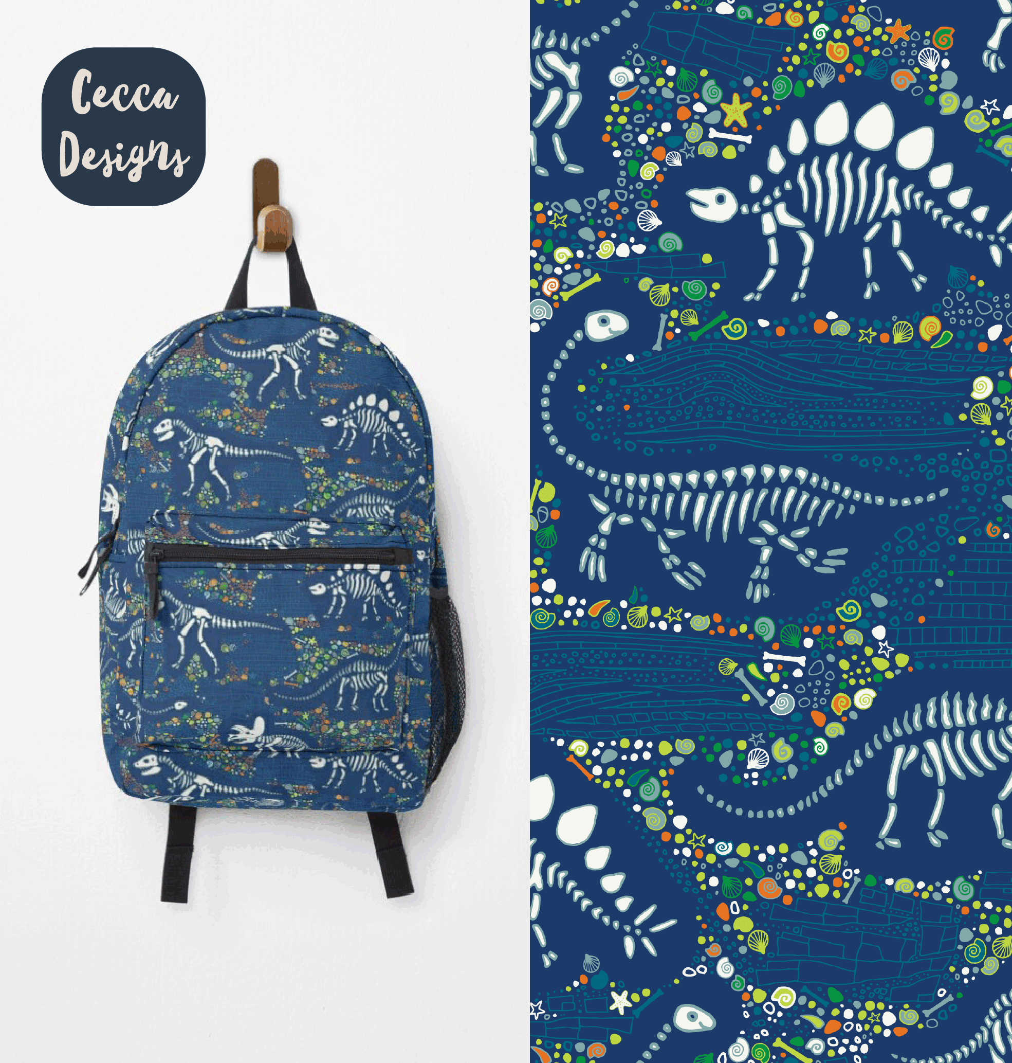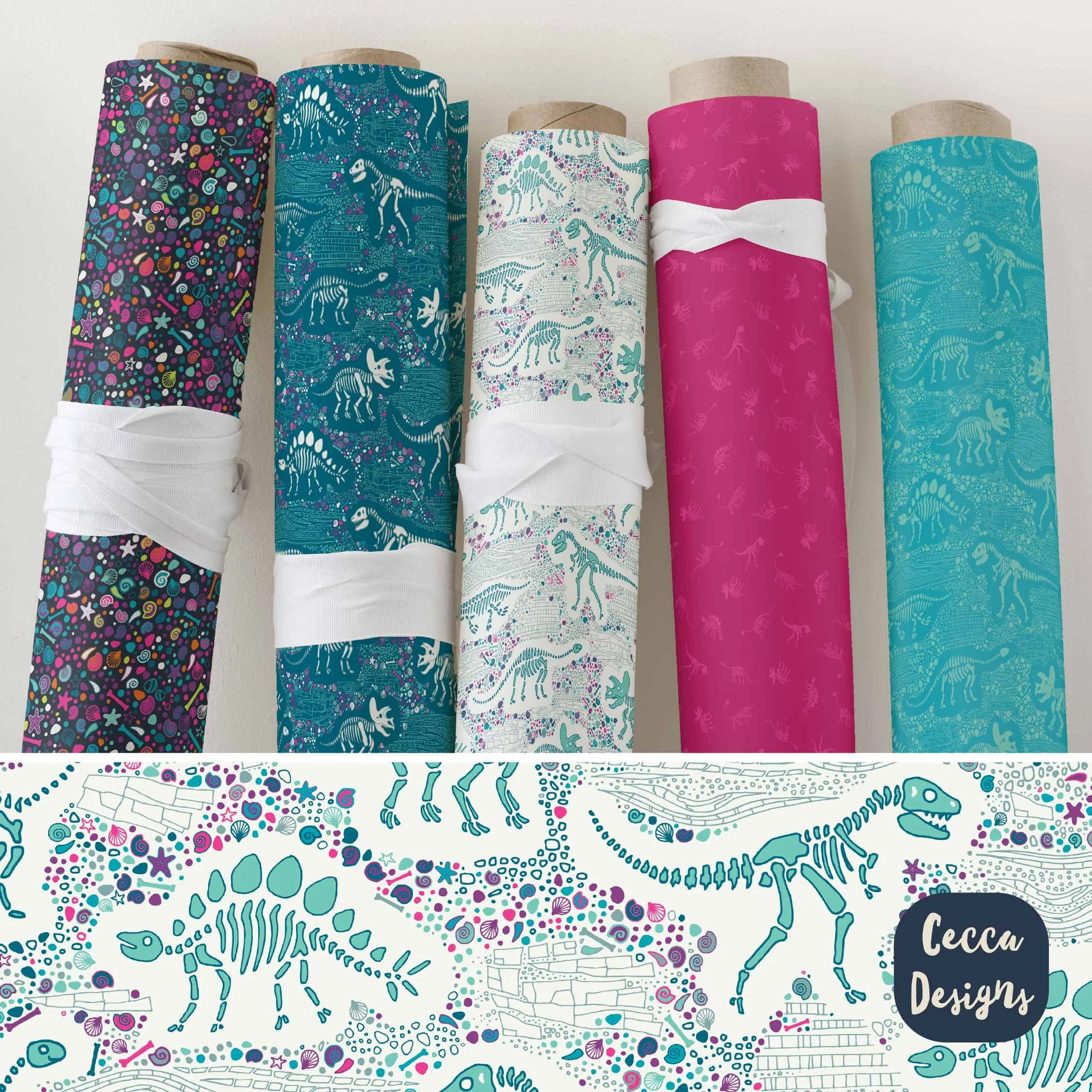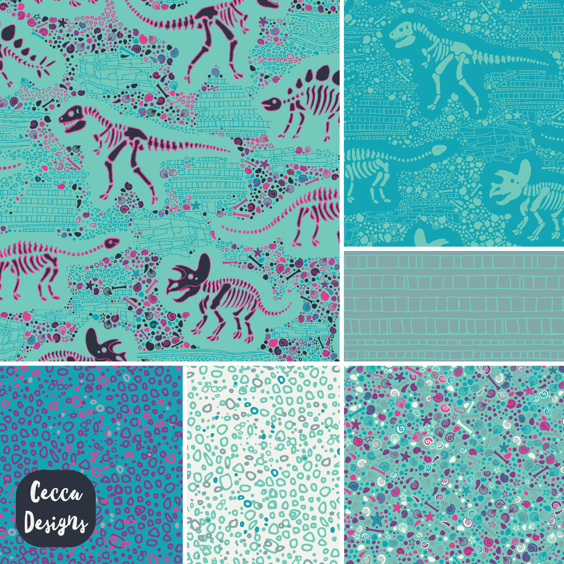 Inspired by my love of dinosaurs and palaeontology, this is a dinosaur fossils themed collection with dinosaur bones, ammonites and other fossils buried in layers of rock. Please get in touch if you would like to discuss possible licensing options - email me at hello@ceccadesigns.com.